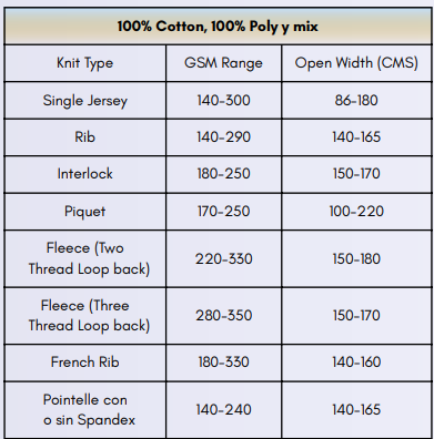 We offer RW and dyed jersey, tubular, rib, and open-weave knit fabrics. Our range includes: